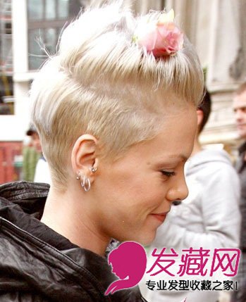 酷感时尚短发配上娇滴滴的玫瑰花饰,刚中带柔,柔中带刚,而竖起的头发令花饰有一冲丛中生长的生命力之感,十分奇特别致。