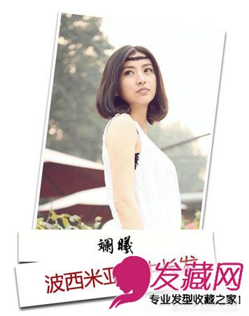 很有民族风情的一款发型,通俗的中长波波头发型,然后在额前带上编发的发饰,让斓曦更添清新气质 ,很迷人。