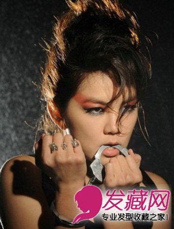 将左右两侧刘海烫得微卷,其它头发都扎起,超美。