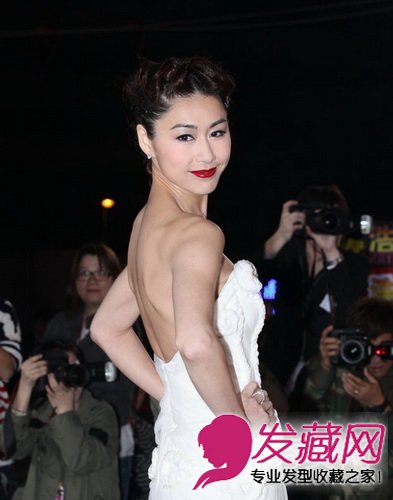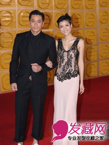 在颁奖礼上勇夺双料视后风景无限的胡杏儿在发型上自然下足功夫,大侧方刘海,额前头发直立定型,加上2012年大热发型趋——湿发,胡杏儿的超短发气场十足。搭配黑羽毛制服,俨然化身高尚性感的黑天鹅。