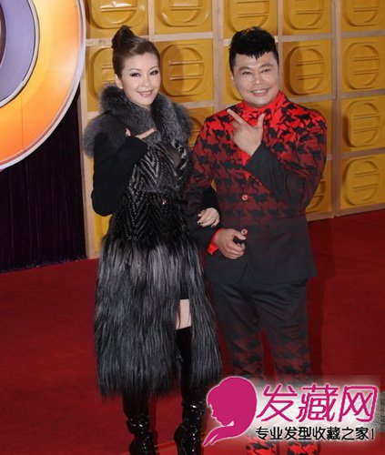 伍咏薇搞怪亮相红毯。棕色头发整个束起,露出额头,简练清新。发髻高高送耸立脑后,不会影响大衣服的大毛领。