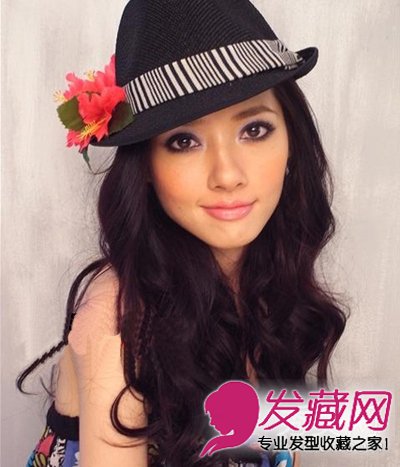 蓬松的海浪卷发,随性披在肩上气质浪漫,而且优雅大方,再搭配粉色碎花玄色帽子异国风情女孩味道十足。
