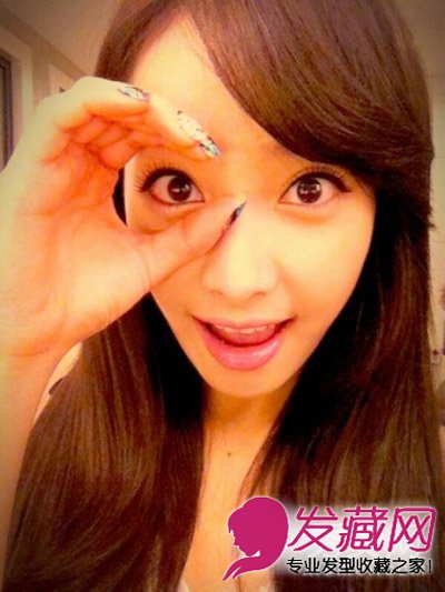 斜刘海的宋茜看起来也是很可爱的样子,自然的长发发型,修颜的斜刘海,大大的眼睛更显精致迷人。