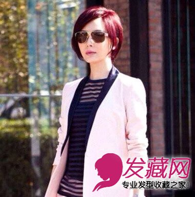 融入棕红色的染发颜色,为这款波波头短发注入了时尚潮流的味道,斜分的