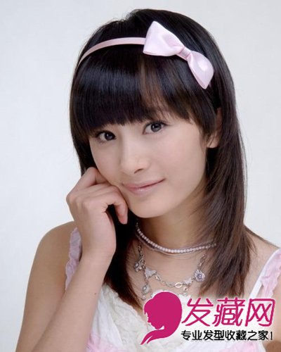 杨幂非常适合有刘海的发型,主要原因是杨幂的脑门较大。这样齐刘海的长发在发型层次上拉的比较高,发梢处发量偏少,十分清纯。