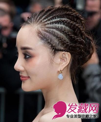 将所有的头发从头顶部位开始分出层次编成小麻花辫的造型十分个性,加上扎发后,简洁又时尚。