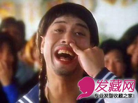 世上第一个如花,长发,学生服,大胡子,星爷的人物设定可是奠定了之后人妖的的基本造型,这锅盖头