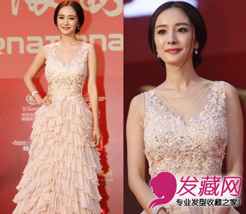 可是红毯的必备法宝,简单但也不出彩。杨幂这样的发型搭配长裙超显丰满上位,感觉胸比脸抢镜。