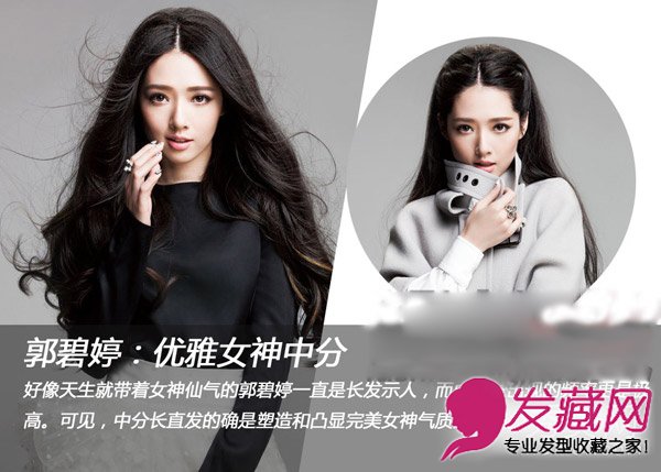好像天生就带着女神仙气的郭碧婷一直是长发示人,而中分发出现的频率更是极高。可见,中分长直发的确是塑造和凸显完美女神气质的利器。