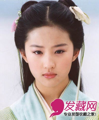 神仙姐姐刘亦菲,凭借古装走红,《仙剑》中可爱的少女造型可是惊为天人,简单的中分发髻搭配彩色的发带很是天真浪漫。