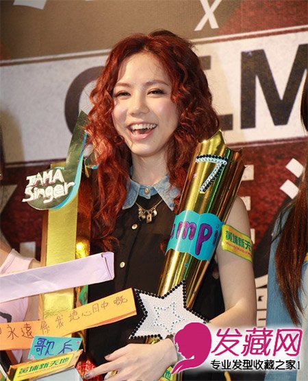 “小金鱼”的脸型非常小巧精致,因此她可以毫无压力的驾驭各种不同风格的发型。这款中分“泡面头”蓬松而富有光泽,同时又不会显得过于膨胀,恰到好处的红棕色很衬肤色。