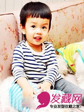 圆嘟嘟的脸蛋,大眼睛,帅气的模样像极了爸爸,短短的齐刘海凸显乖巧小潮男范。