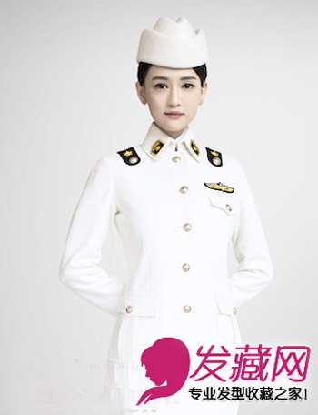 一身白色制服,面容清秀,带着帽子,似新鲜玫瑰盛开,据装造型气质优雅,不失帅气。