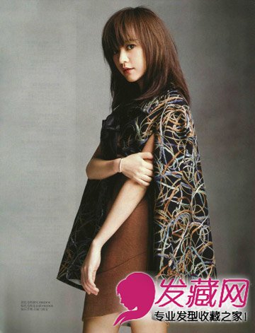 难得的齐刘海发型,这样韩味十足的刘海发型看起来有点不像她了,棕色的