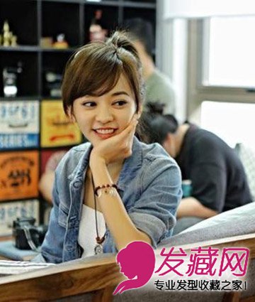 清爽的扎发发型,韩式的花苞头扎发搭配斜刘海很好的修饰了脸型,大大的眼睛看起来萌感十足,减龄效果超赞。