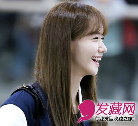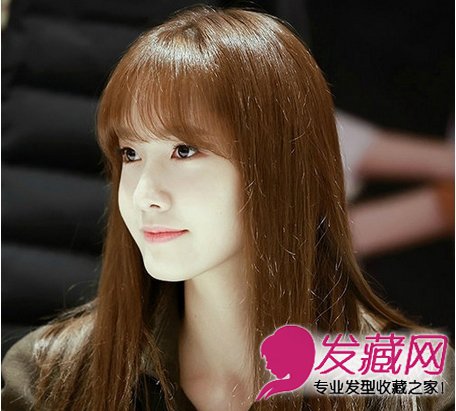 在灯光下十分靓丽抢眼,让刘海显得更加轻薄,充满空气感,同时也称出允儿白嫩的肌肤。