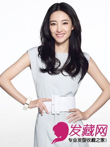 中分长发造型,黑色长发的发梢进行微微烫卷,露齿一笑,展现阳光活力的一面。
