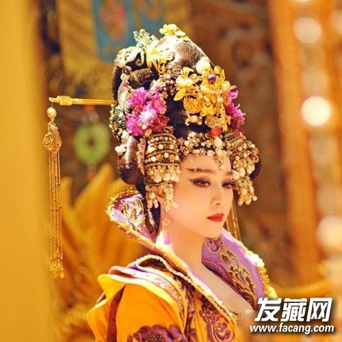 武媚娘终于坐上皇后的宝座,与皇帝李治同排而坐,头饰也有了较前面明显的变化,采用金色头饰最多,还配以红色珊瑚头钗,鬓唇采用鎏金金钗垂到耳边,发髻上更是簪着两朵真花来点缀,皇后霸气之姿不动自现。