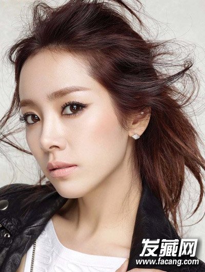 在2015年韩系的公主头也不再是服帖规矩的样子,而是将刘海随意的垂于脸侧来增加发型的慵懒感。