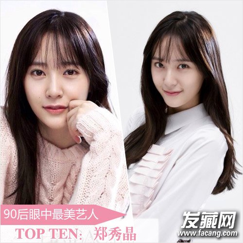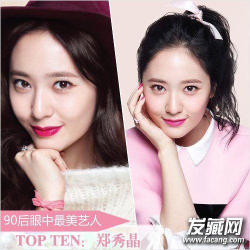 Fx的郑秀晶,一直主导高冷女神路线,精致的五官也是韩国女生整容的范本,以前的中分发型超显时尚范,而扎发的时候又格外可爱清纯。