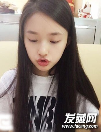 ,显露光滑的额头,清纯可爱的小脸,在黑发的修饰下越发恬静迷人。