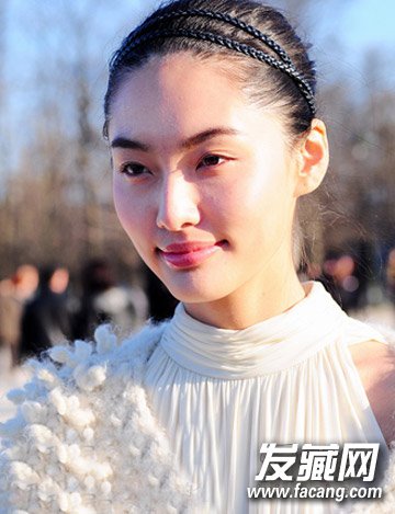 清爽的露额盘发造型,发丝梳理的一丝不苟,用发带来点缀,更显精致的轮廓,清爽大气。