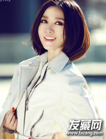 不加多余的修饰,天然去雕琢,休闲夹克衫的姚贝娜,中分短发,配上栗色