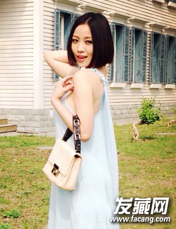 偶尔展现出调皮的一面,身穿清凉的雪纺长裙,简单知性的中分短发,恬静可爱。
