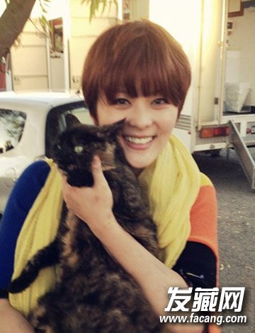 亚麻色的短发发型,可爱的齐刘海遮住额头,阳光般的笑容,非常可爱的一个妹纸。
