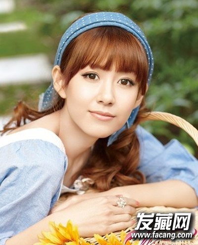 杂志封面造型,日系的发带绑发造型,搭配齐刘海很是甜美淑女,深棕色的