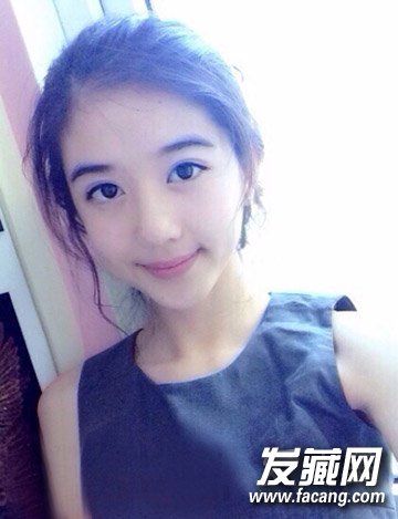把长发全部扎起来,光洁的露额发型,几缕碎发修饰着脸颊,温柔淑女范十足。