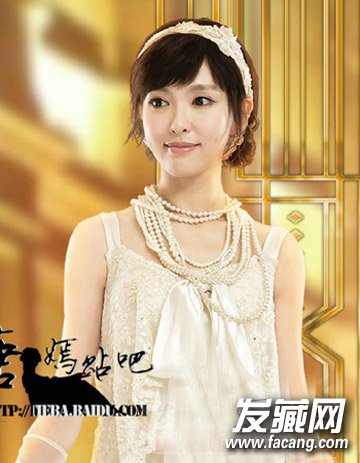 同样是一款优雅感十足的唐嫣民国时期造型,与上一款造型相比这款造型更显高贵淑女风,简单的斜刘海造型设计,再与这种精致的
