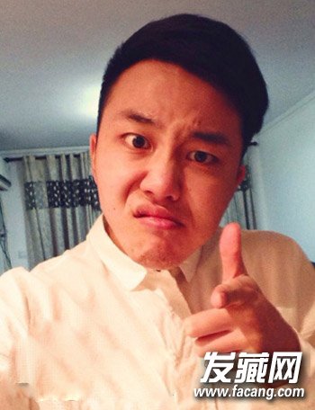 贺鹏的这款短发颇有个性,侧边铲平,头发往一侧梳理,看起来十分个性有型,挑衅的逗比表情,彰显90后风格。