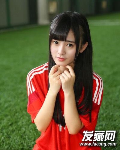 微卷的空气刘海让头型看起来更圆润,顺直的长发清纯自然,甜美迷人。