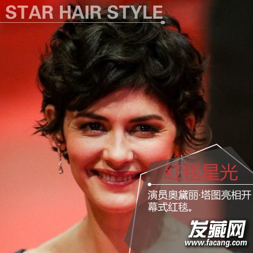 突出奥黛丽·塔图的黑色大眼睛以及瓜子脸。