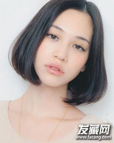 齐颈的短发微微内扣的蓬松效果修颜,搭配自然的中分