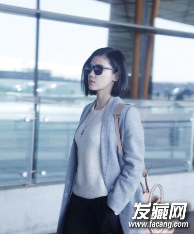 机场接拍,短发酷感十足,单色系风衣搭配很显时尚范,甜美不失大气。