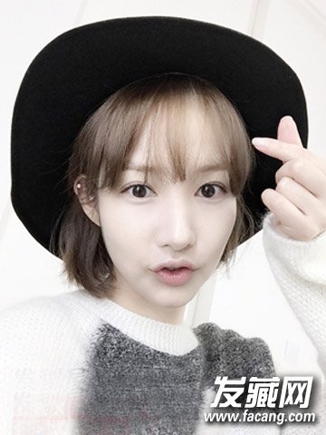 ,多了一些日系的个性感,空气感的刘海,薄薄的灵动显嫩,清爽的短发,黑色礼帽,散发出潮流气息。
