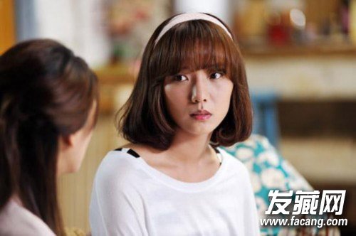 王珞丹饰演的李明玉知性有才华,外形上也依旧保持着韩式的甜美感,内扣的齐刘海梨花头,戴上发箍,清纯淑女。