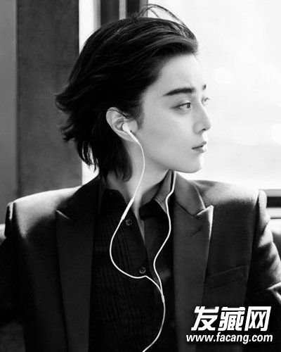 最近女星都流行抽烟装,范爷走中性风也是驾轻就熟的,往侧后方梳理的头发露出整个脸型,两侧边的头发也往后梳,形成一种飘逸的感觉,帅气型格。