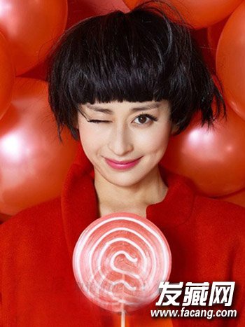 颖儿超可爱的,俏皮的蘑菇头剪发,齐