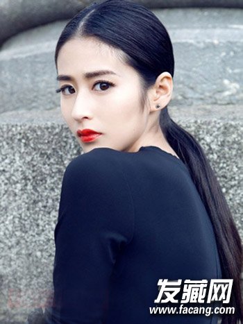 大眼睛鹅蛋脸型,典型的东方式古典美女颖儿,光洁的中分马尾扎发,凸显出高挺的鼻梁,大气时尚。