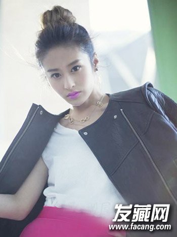 身穿皮夹克走起帅气风,也是超有范的,白色红色的职业套装,整洁的妆容,清爽的丸子头,显得酷雅女孩一面。