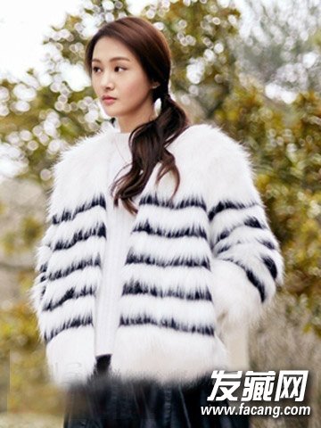 自然卷的长发造型,剪出层次看起来更加简约大方,侧边马尾更显嫩,穿着皮草的湘湘,可爱纯真又时髦。