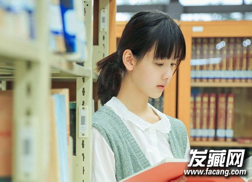 陈都灵唯美写真造型,校园系写真,黑色齐肩发扎成低马尾,简单清纯,细碎的齐刘海让五官更加精致动人。