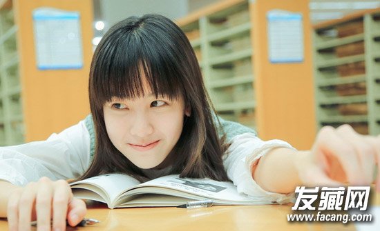 将短发放下来,披肩直发加上空气感十足的刘海,天真自然,清新校园风让人觉得很舒服。