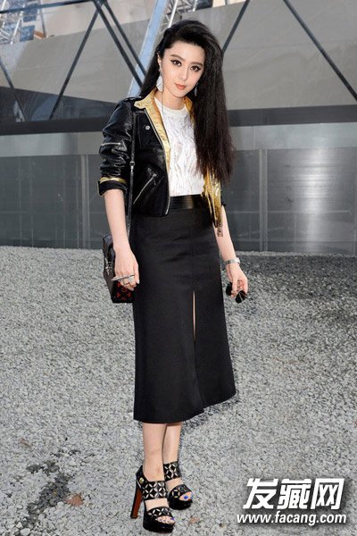 搭配半身裙,整体感觉很是时尚帅气,小卷烫发造型展现摇滚范,即使没有大卷或长