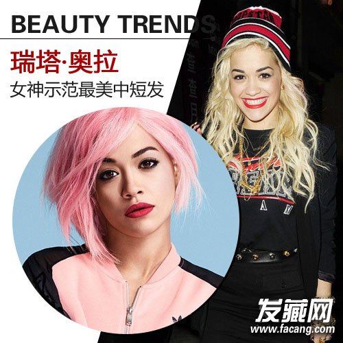 流行歌手瑞塔·奥拉一头粉色短发十分抢镜,Rita Ora一向都是时髦一派先行者,这款大胆粉色染发把她的摇滚气质展现得淋漓尽致,与红唇形成鲜明对比,更加吸睛。