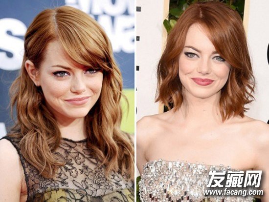 石头姐的这款WOB长度刚好及肩,发尾随意的曲线既修饰了她原本有点宽的下巴轮廓,还增加了一丝俏皮感,而闪耀的红棕发色无疑更为她加分。对比一下她的长发时期,我们所看到的是石头姐越活越年轻了。