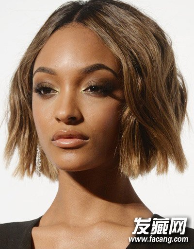 发型露出清爽额头,蓬松卷发设计简单好打理,亚洲人弄来一样也适合。